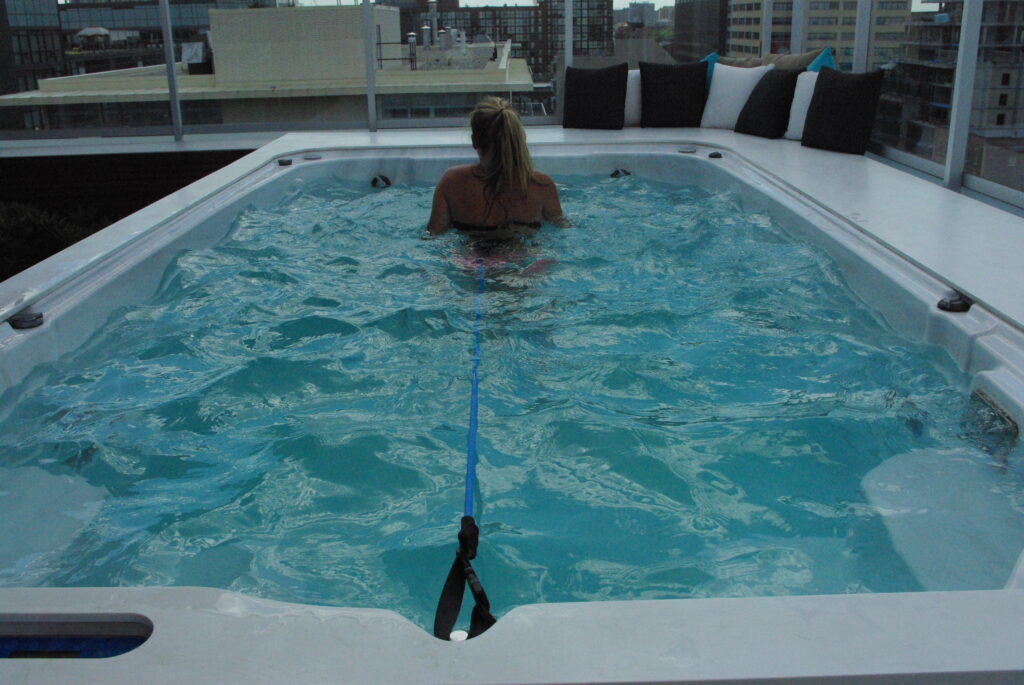 W tym przypadku trening nie ogranicza się tylko do pływania. W basenie swim spa możesz uprawiać: