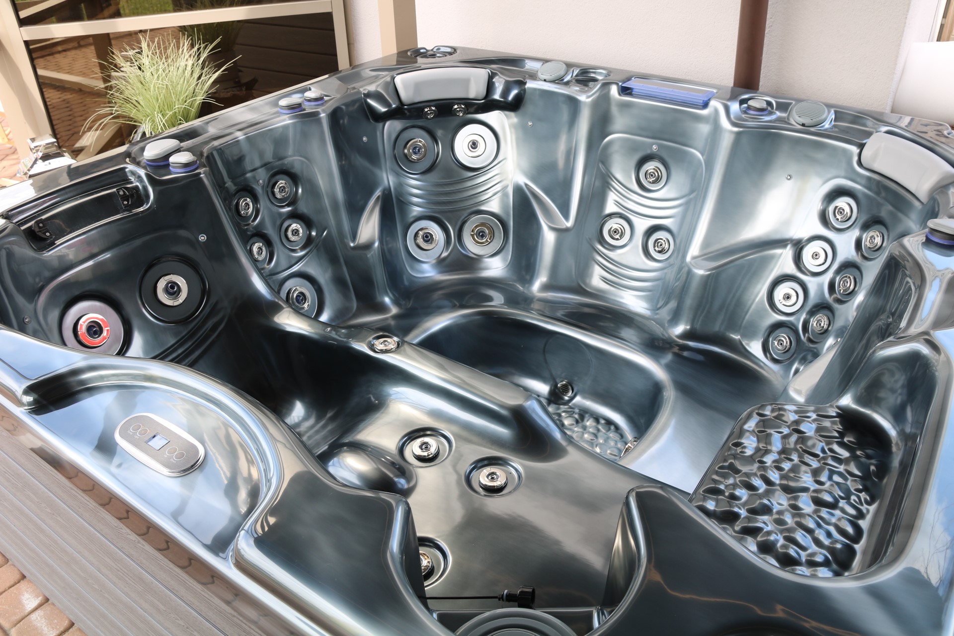 Pompy dwubiegowe o zmiennej prędkości pozwalają na uruchamianie wodnych atrakcji, takich jak bąbelki czy hydromasaż, zapewniając przy tym właściwą filtrację wody. Wanna z hydromasażem dla 6 osób ma wbudowane oświetlenie LED oraz system nagłośnienia. Pokrywa termoizolacyjna z kolei zapewni temperaturę wody na stałym poziomie.