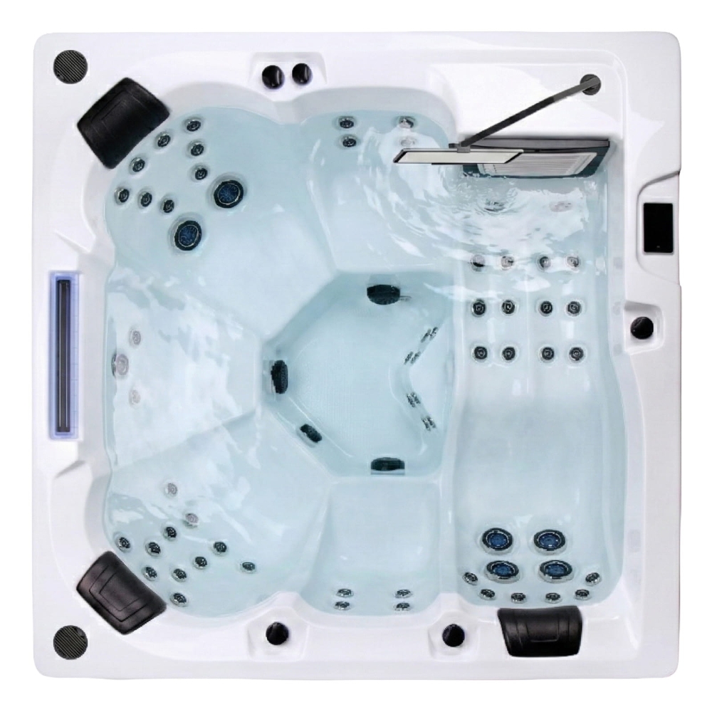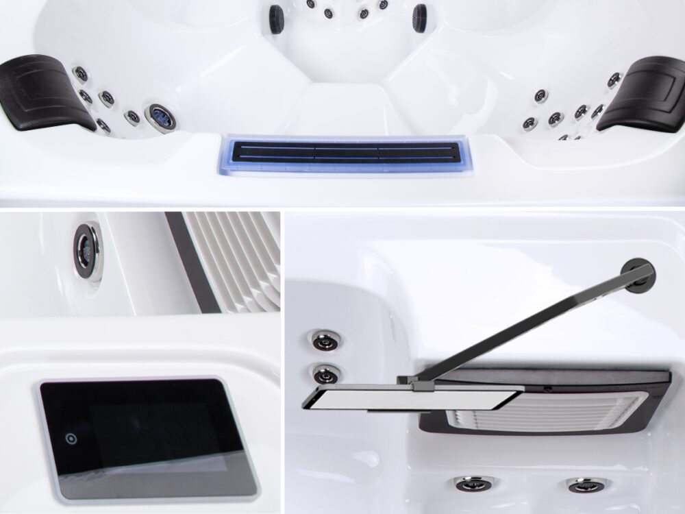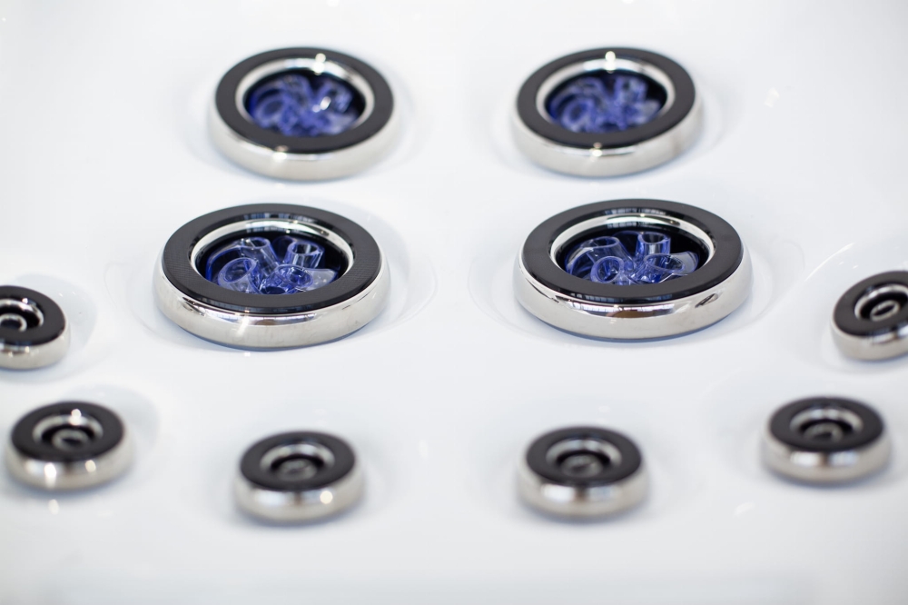 - Potężna moc hydroterapii: 64 dysze zasilane przez dwie pompy o mocy 2 HP każda to gwarancja, że każdy z użytkowników otrzyma masaż o odpowiedniej sile i dynamice, niezależnie od tego, ile osób aktualnie korzysta z kąpieli.