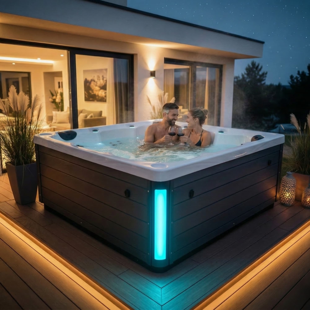 Zdecydowanie tak. Model WaterWorld to mistrzostwo ergonomii. Dzięki przemyślanemu projektowi niecki i rezygnacji z drugiej leżanki na rzecz wygodnych siedzisk, uzyskaliśmy przestrzeń, która komfortowo mieści 6 dorosłych osób . Każde miejsce jest wyprofilowane tak, aby zapewnić swobodę ruchów, czyniąc ten model idealnym „centrum dowodzenia” dla większych rodzin lub spotkań towarzyskich.